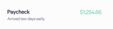 Set up direct deposit and start earning interest on your paycheck. We’ll even pay you up to two days early. The earlier you get your paycheck, the more time you have to earn interest.